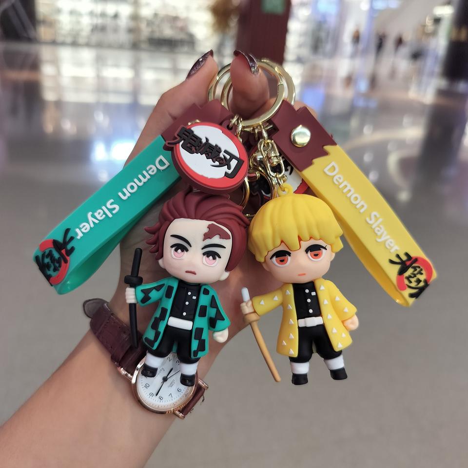 6 Color High Quality Cute Anime DemonSlayer Character Tanjiro Kamado Nezuko Kamado Zenitsu PVC Mini Figure Rubber Keychain