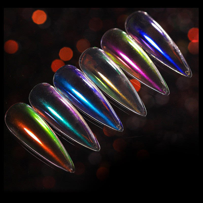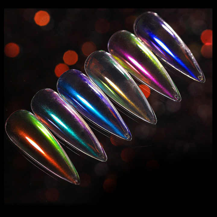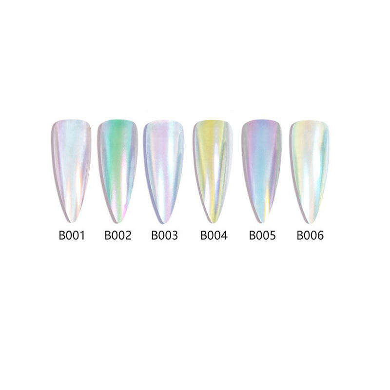 Ensemble de 6 couleurs, poudre liquide magique sirène pour nail art, illusion de miroir, glace transparente, aurore rose nude, rouge net, certifié halal