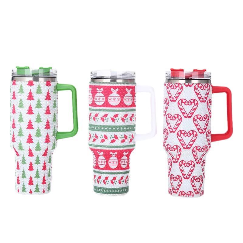 6 couleurs 40oz arbre de Noël et canne à sucre strass tasses Bling strass réutilisable isolé voyage gobelets avec poignée