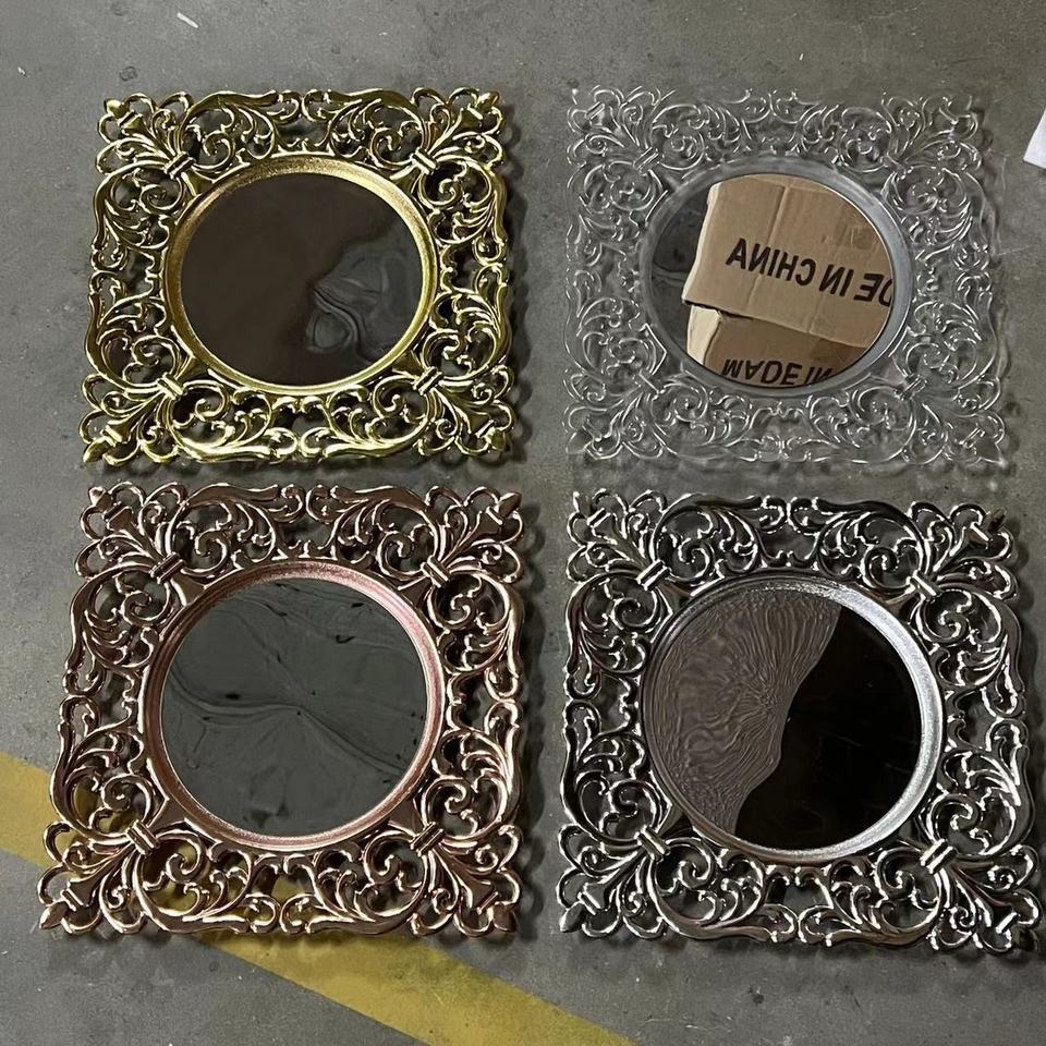 6 couleurs carré courtois robuste Vintage dentelle en détresse décor miroir bol de fruits plateau décoratif chargeur assiettes pour mariage