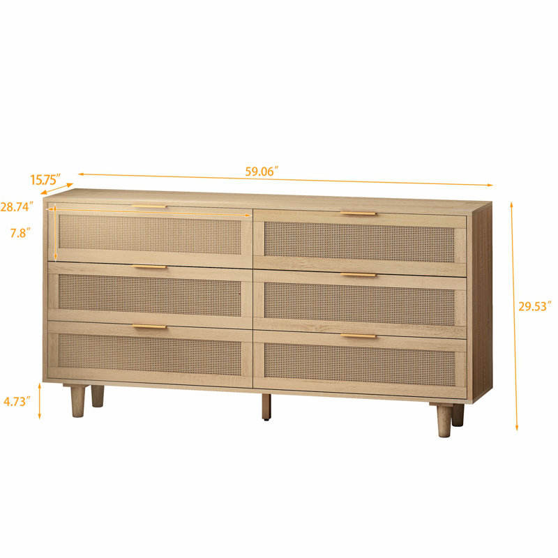 DreamCraft Commode en rotin 6 tiroirs 59.06 "avec coffre de rangement Meuble de chambre Vietnam pour l'organisation Rotin durable