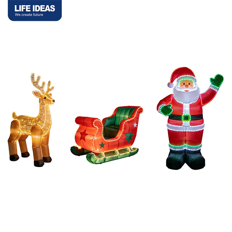 Père Noël gonflable de 6 pieds tenant une boîte cadeau, ornement de Noël gonflable à LED pour la cour, la pelouse et le jardin, décoration de vacances