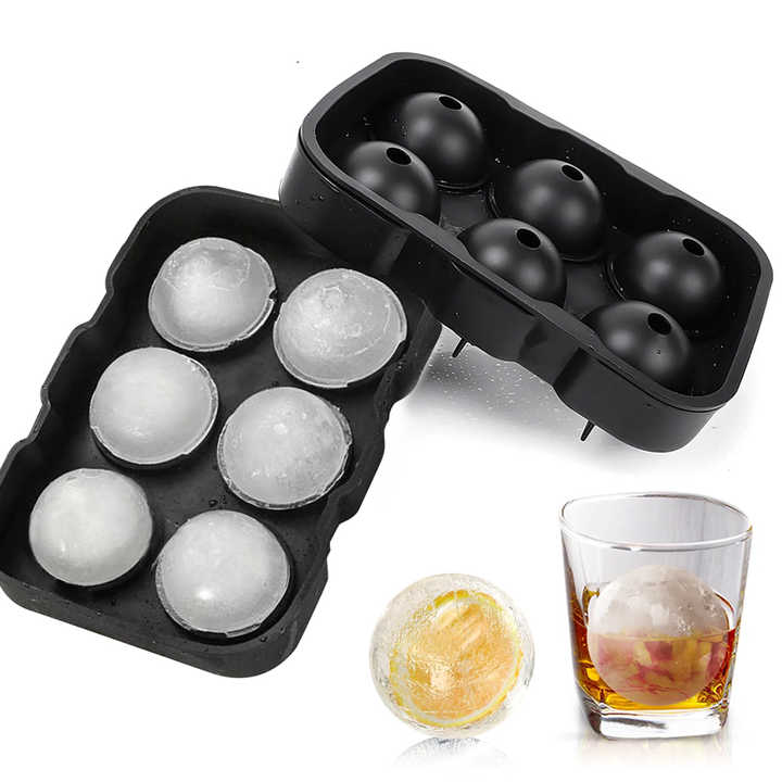 Moule à glace rond à 6 grilles DIY Whisky Hockey Moule à boule de glace Plateau à glaçons en plastique avec couvercle et bac de rangement