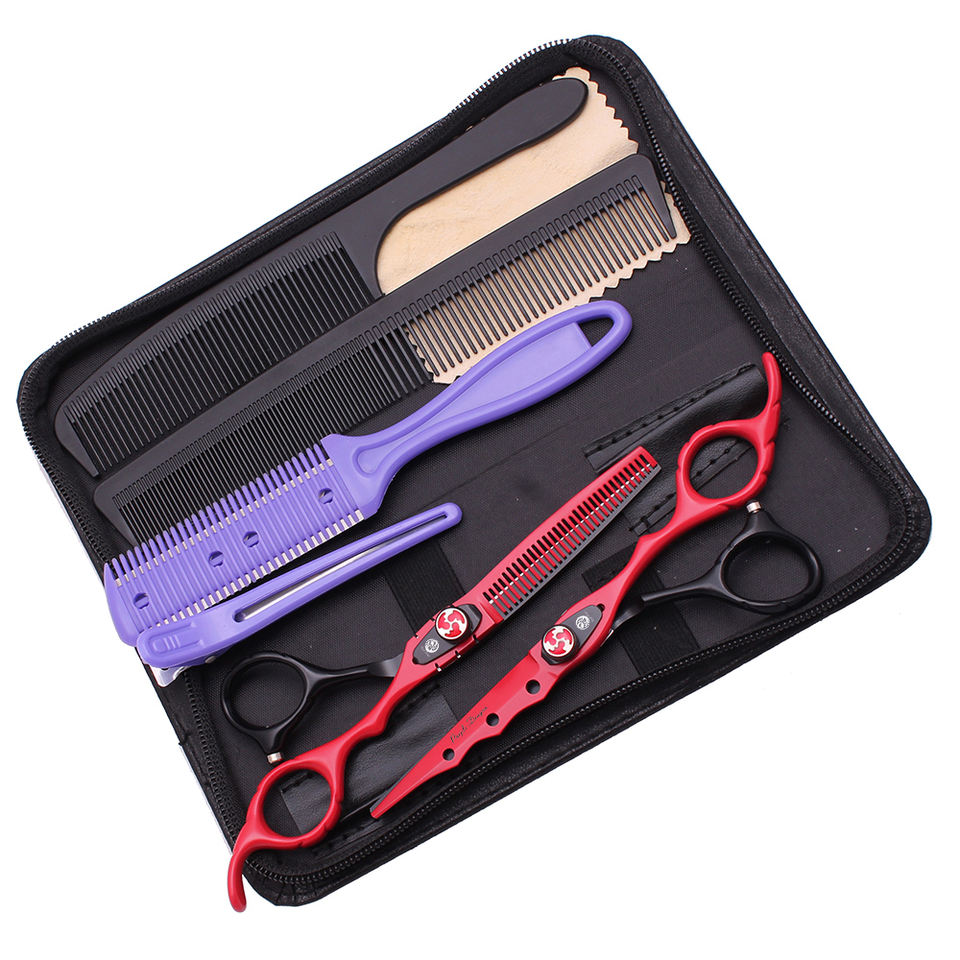 Ensemble de ciseaux de coiffure de 6 pouces, en acier japonais, ciseaux droits pour effiler les cheveux, peigne, Kit de coiffure, outils professionnels pour salon de coiffure 1019KA
