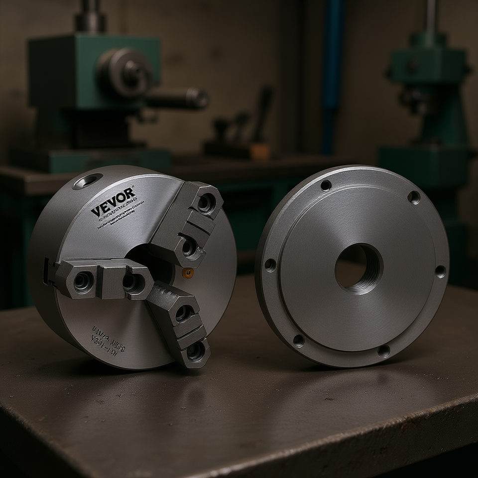 Mandrin de tour à 3 mors de 6 pouces en acier auto-centrant avec plaque de support filetée de 1 1/2 po (8 points) pour usinage sur tour
