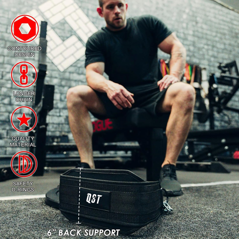 Ceinture de musculation respirante en néoprène avec chaîne en acier de 6 pouces pour l'entraînement, soutien du dos, ceinture de sécurité lestée pour la remise en forme
