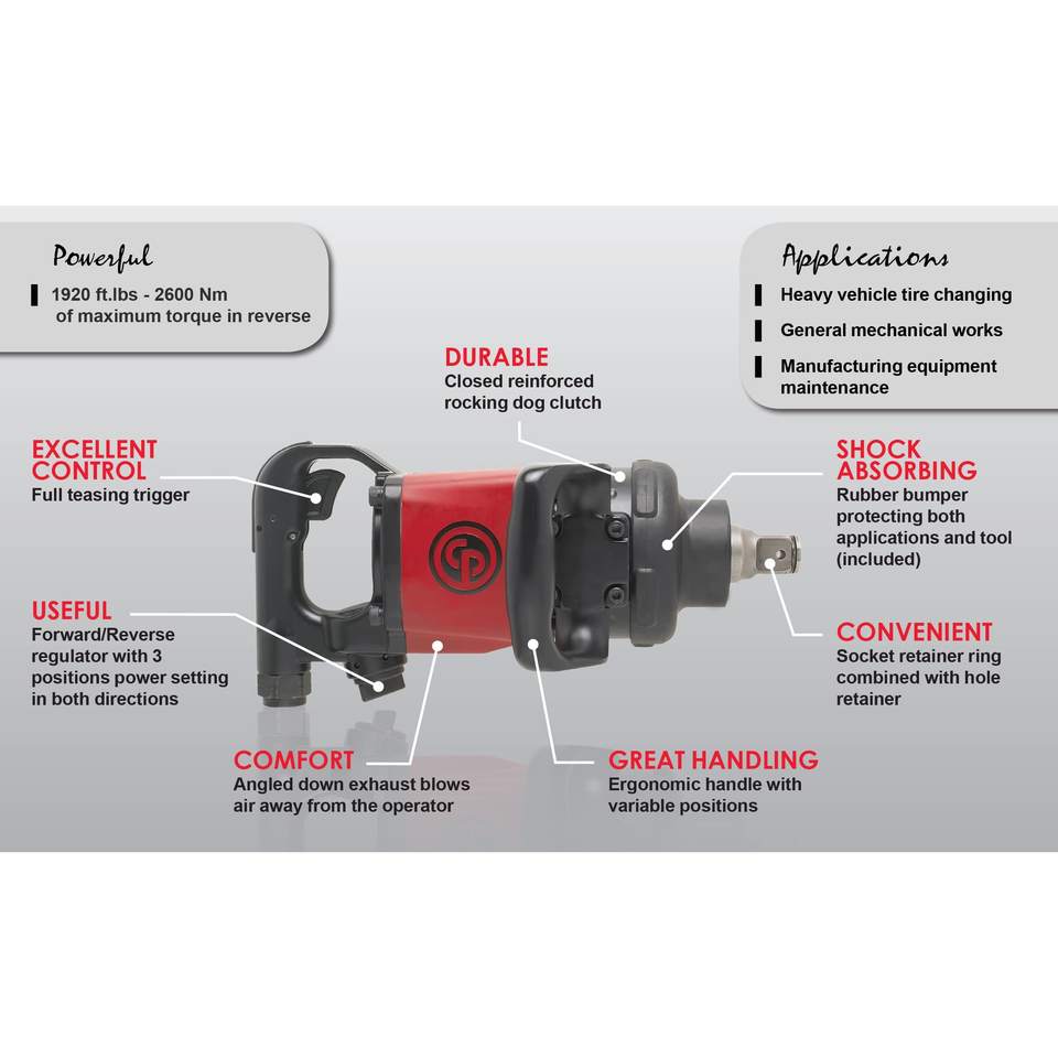 Clé pneumatique industrielle de 6 pouces à poignée en D, sans goupille, type Rocking Dog, modèle 1920 Max, pour réparation et assemblage
