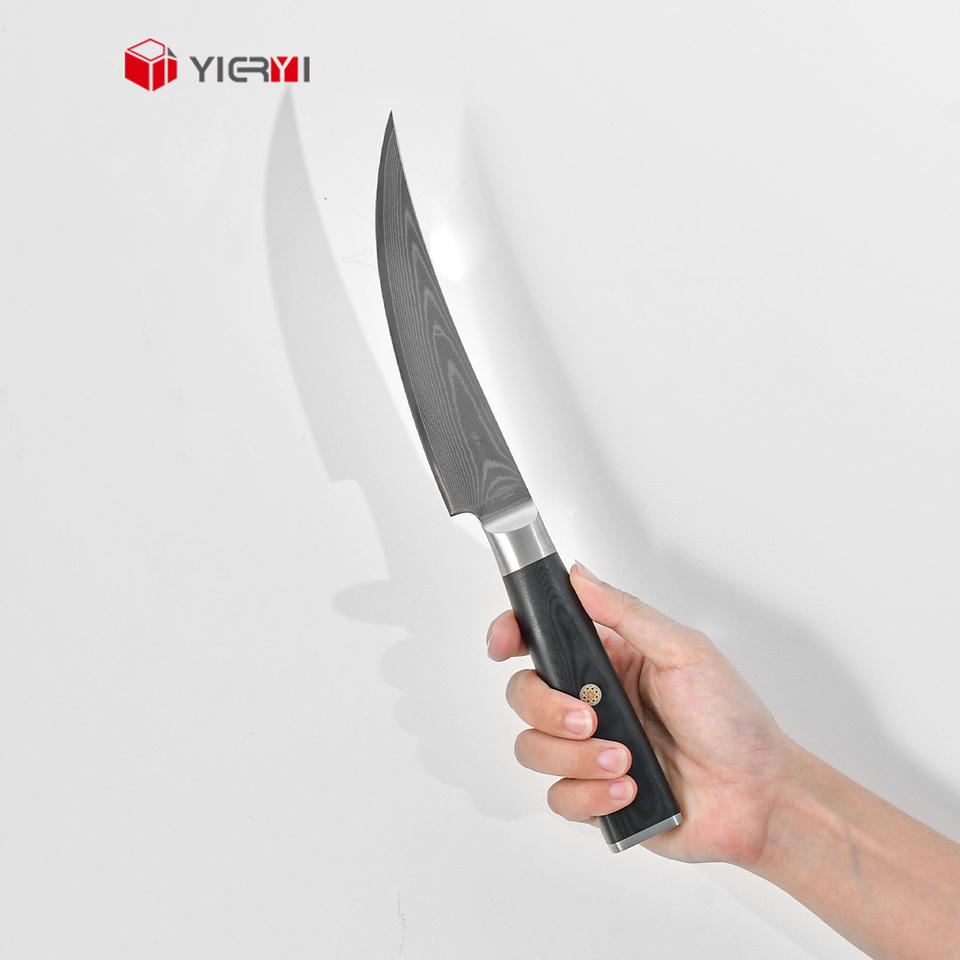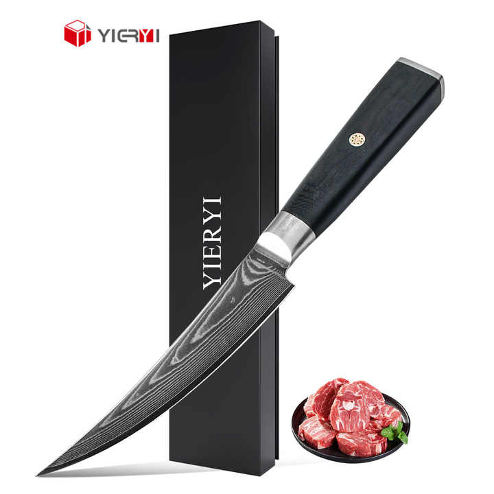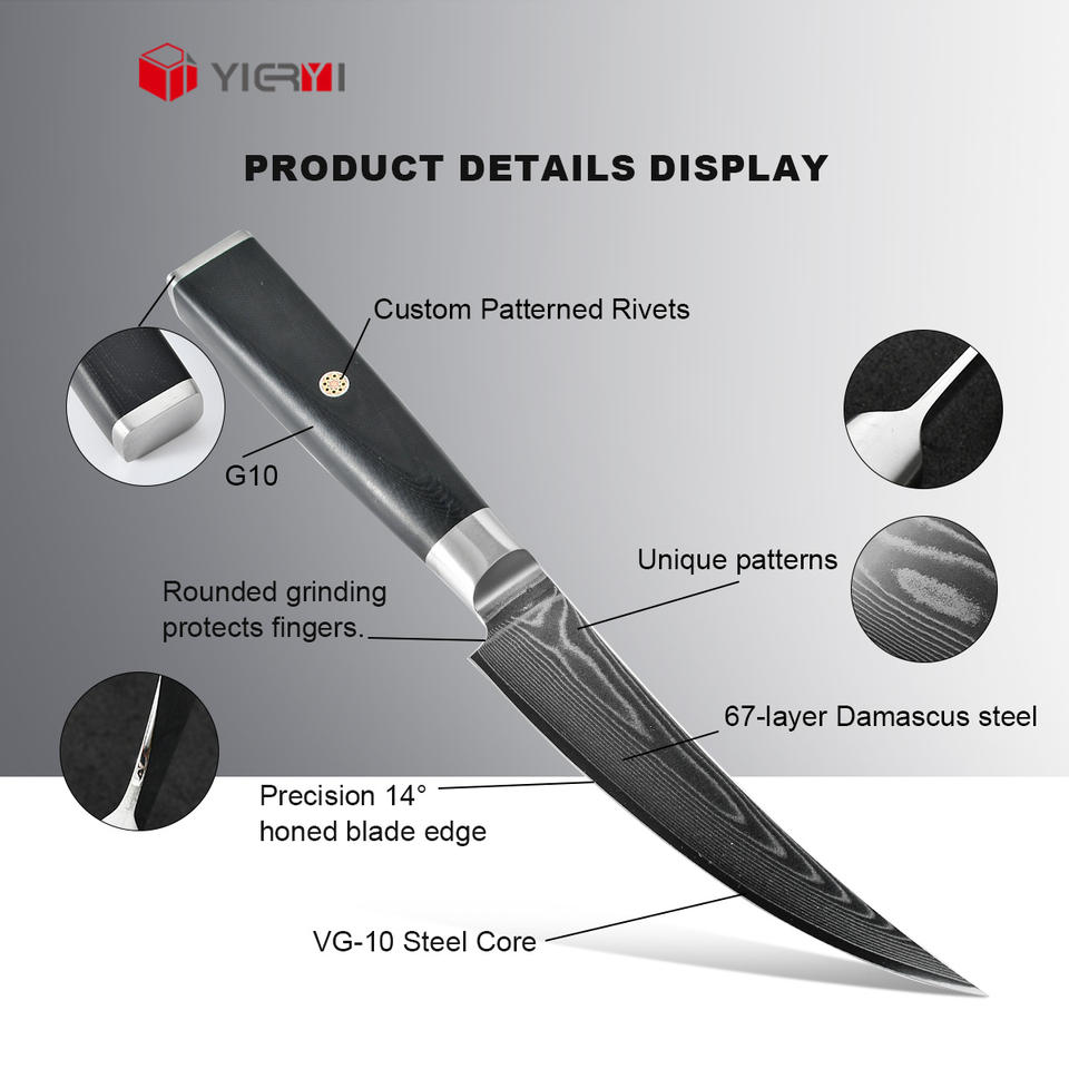 Couteau de cuisine en acier Damas à haute teneur en carbone de 6 pouces, couteau à désosser incurvé pour le poisson et les os, avec manche en G10