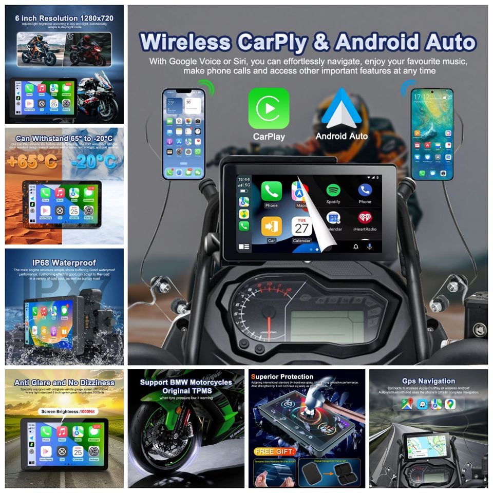 Écran IPS sans fil de 6 pouces pour BMW R1200GS/1250GS/1300GS, autoradio étanche IP68 pour moto, TPMS, GPS Wonderwheel