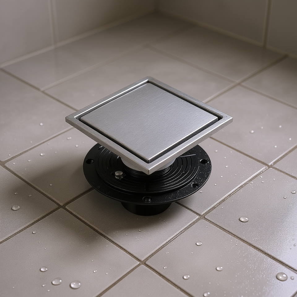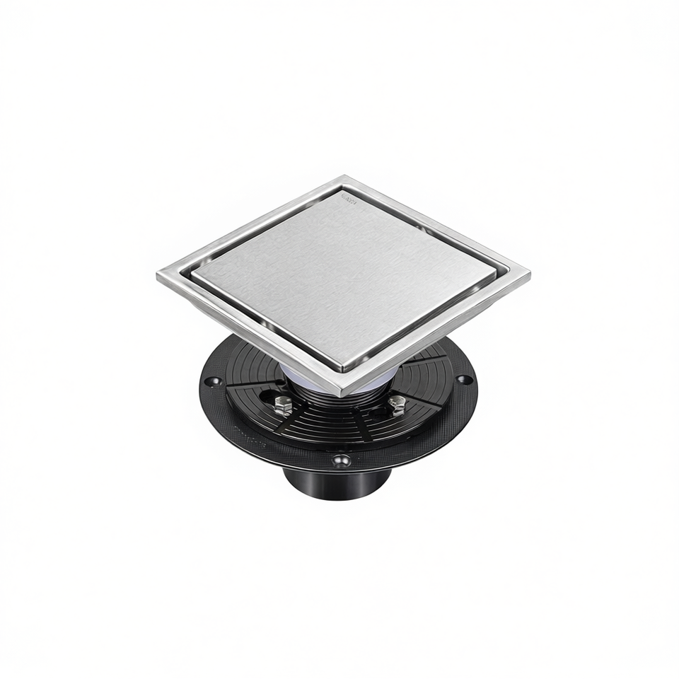 Drain de douche carré 6 pouces en acier inoxydable brossé, design moderne, installation facile