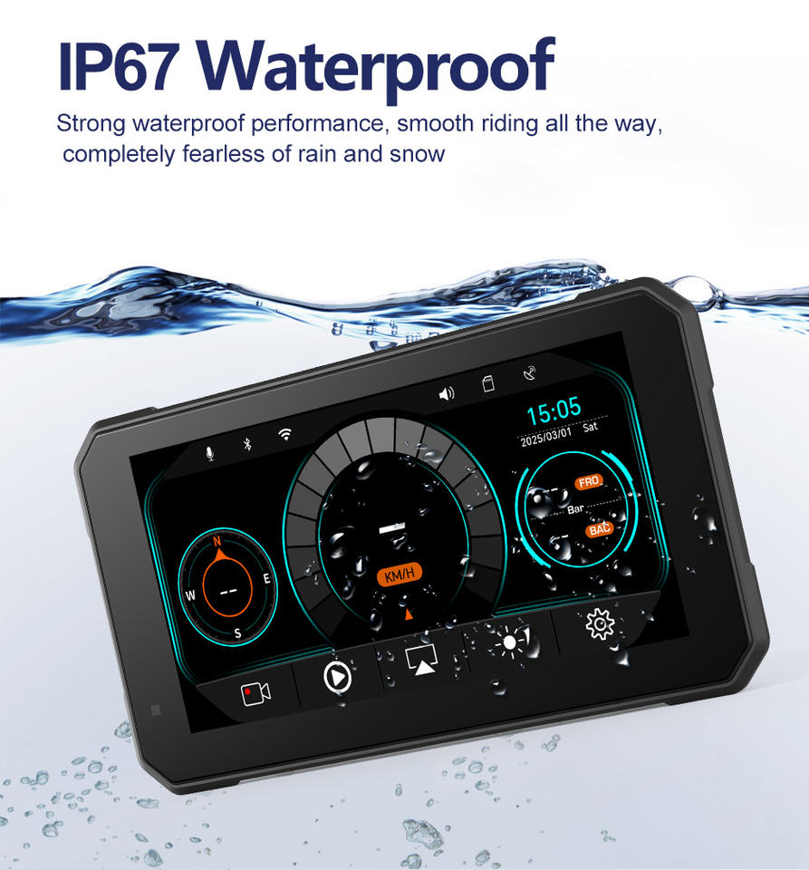 6-Inch Waterproof IP67 Motorcycles Wireless GPS Navigation 1080P Video Recorder Dual Lens Touch Screen for Carplay Android Auto
