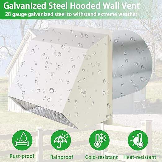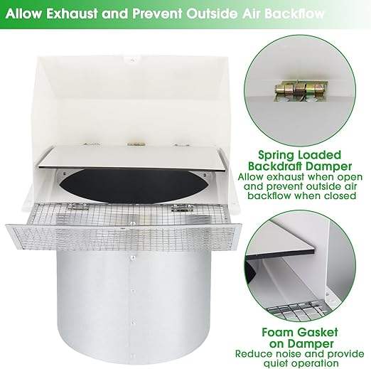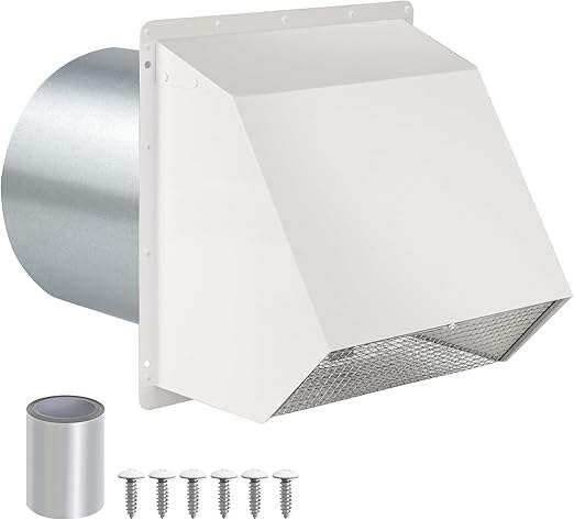 Hotte murale blanche de 6 pouces avec écran et amortisseur, couvercle de ventilation murale pour ventilation extérieure, hotte de cuisine