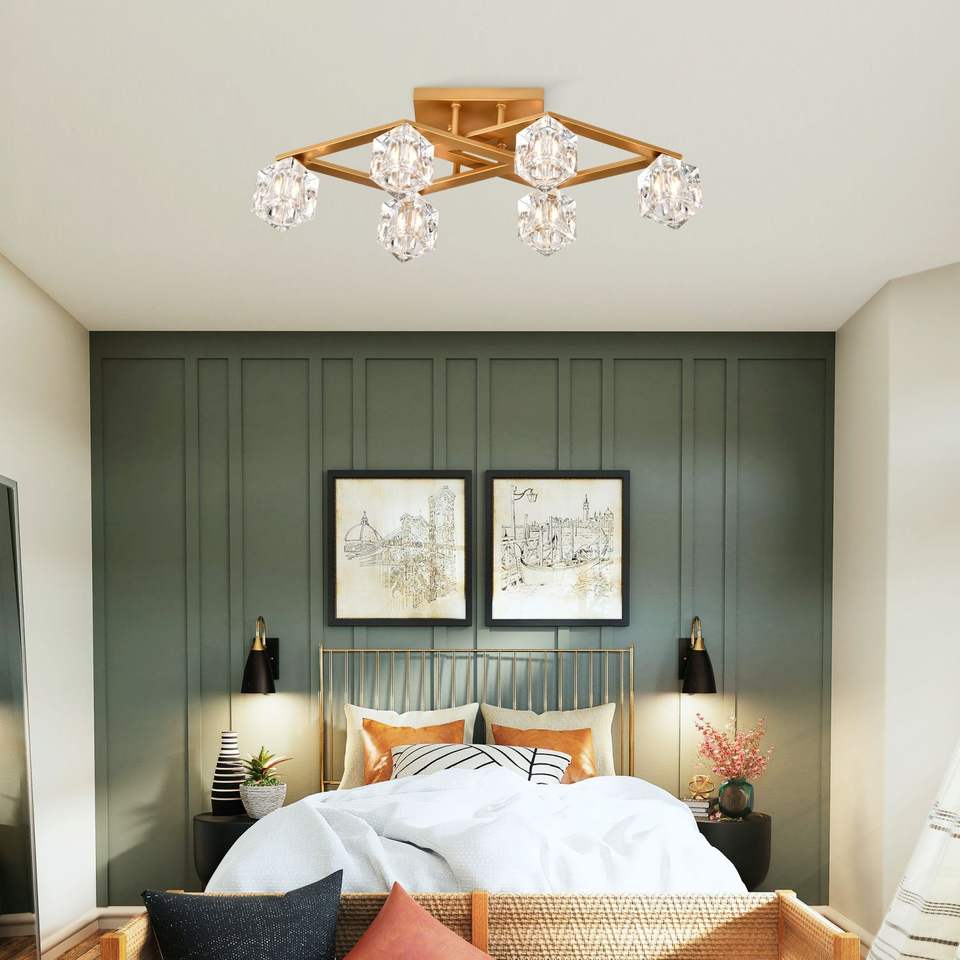 Plafonnier en cristal moderne 6 lumières 6 * ampoules G9 finition or pour salle à manger entrée hall cuisine salon salle de conférence