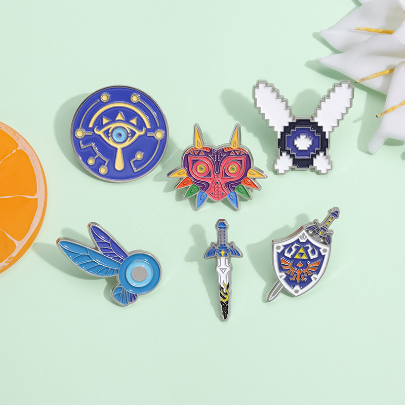 6 nouveaux designs de broches en métal épée et bouclier de la légende de Zelda pour la décoration de sacs à dos et de vêtements