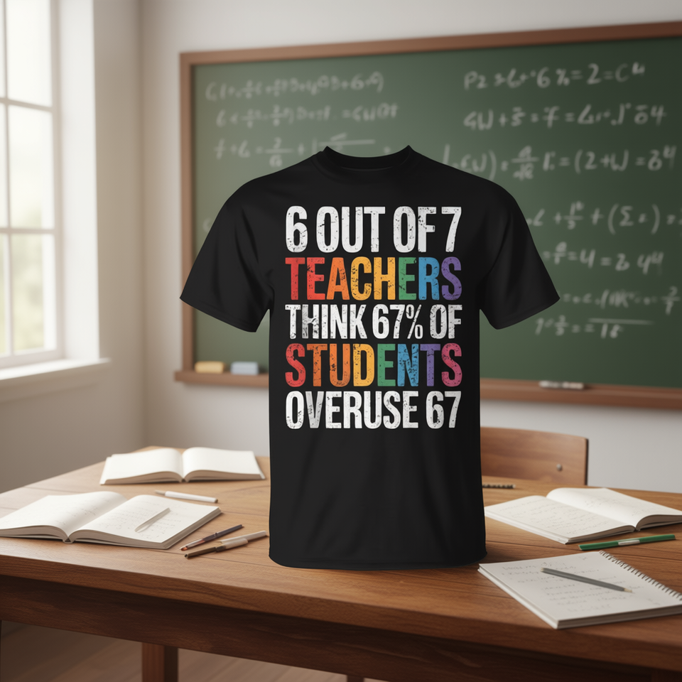 6 sur les 7 enseignants estiment que 67 % des élèves utilisent trop de [termine à insérer ici, par exemple : "smartphones", "appareils électroniques", etc.] T-shirt avec citation