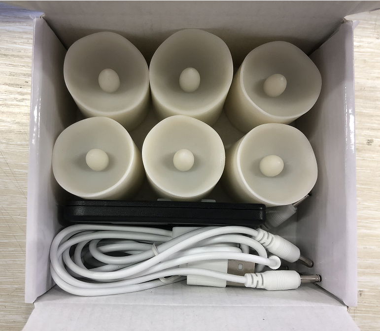 Chaque paquet est livré avec 6 bougies chauffe-plat led rechargeables, 1 câble de charge avec 6 ports et 1 télécommande.