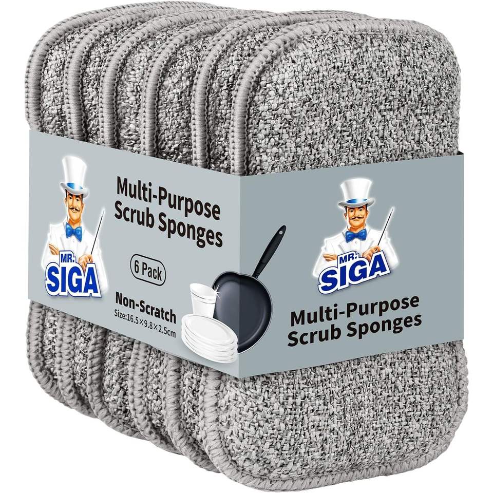 Lot de 6 éponges à récurer double face, durables et réutilisables, pour la vaisselle et la cuisine
