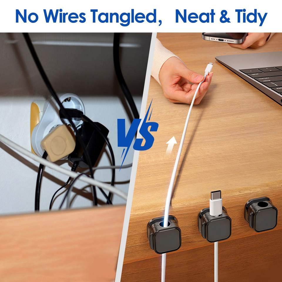 Lot de 6 clips magnétiques pour câbles, organisateur de fils adhésif pour la maison, le bureau, la voiture, la table de chevet, le mur, organisateur électronique