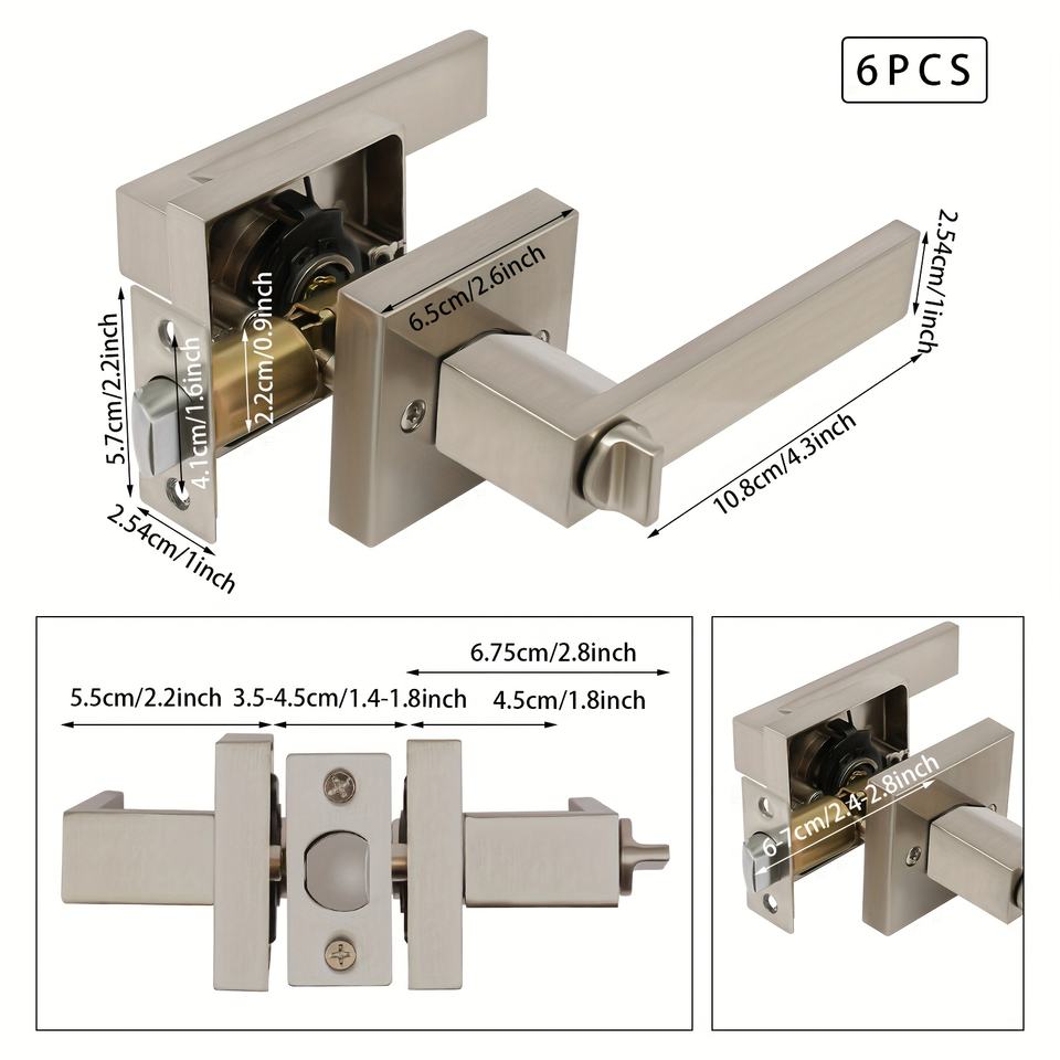 Lot de 6 poignées de porte intérieures en alliage de zinc robustes avec fonction de déverrouillage d'urgence pour chambre et salle de bain, norme américaine