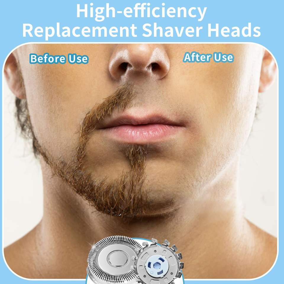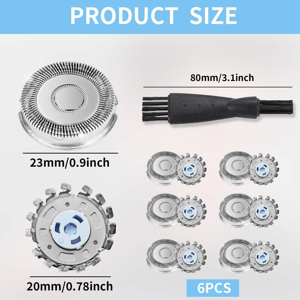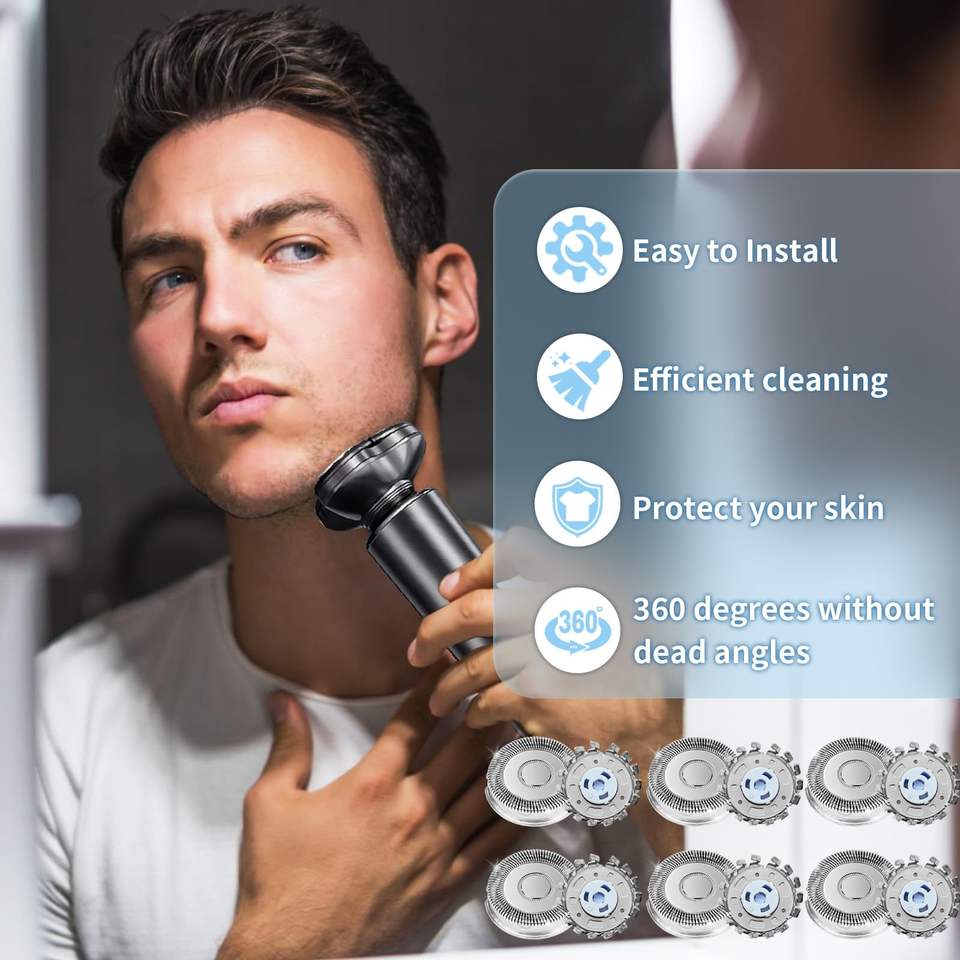 Lot de 6 têtes de rasoir de rechange à triple lame pour rasoirs électriques, étanches IPX7, lavables, pour le rasage du visage et du corps, avec brosse de nettoyage