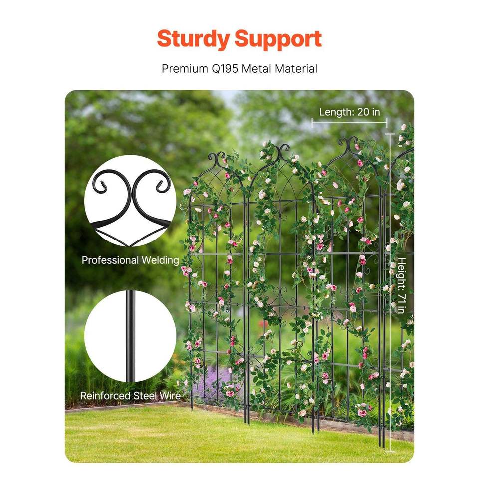 Lot de 6 treillis métalliques antirouille pour jardin, 71 x 20 po, pour roses grimpantes d'extérieur, clôtures, treillis et portails