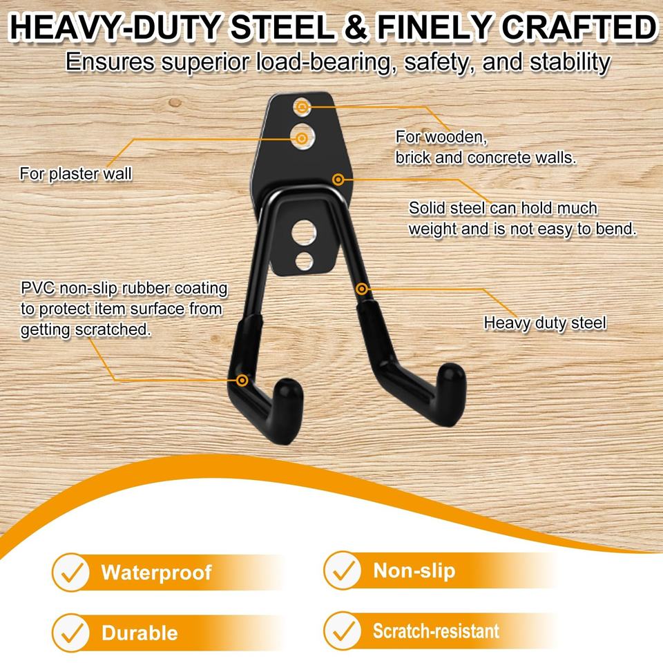 Lot de 6 crochets de rangement mural Crochets de garage en acier robuste Crochet de rangement pour garage utilitaire Montage mural Double cintres pour outils