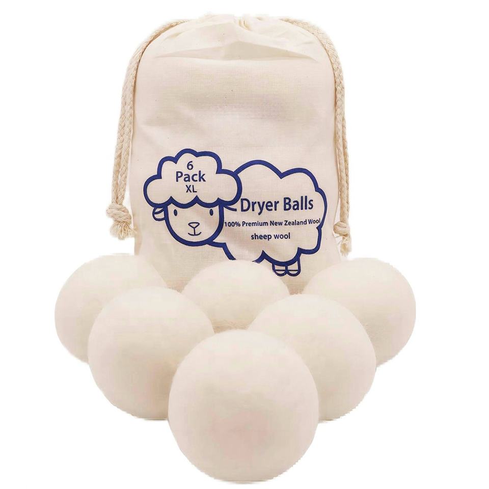 Lot de 6 boules de séchage XL faites à la main, réutilisables, écologiques, en feutre pur biologique, laine de séchage rapide, laine de Nouvelle-Zélande