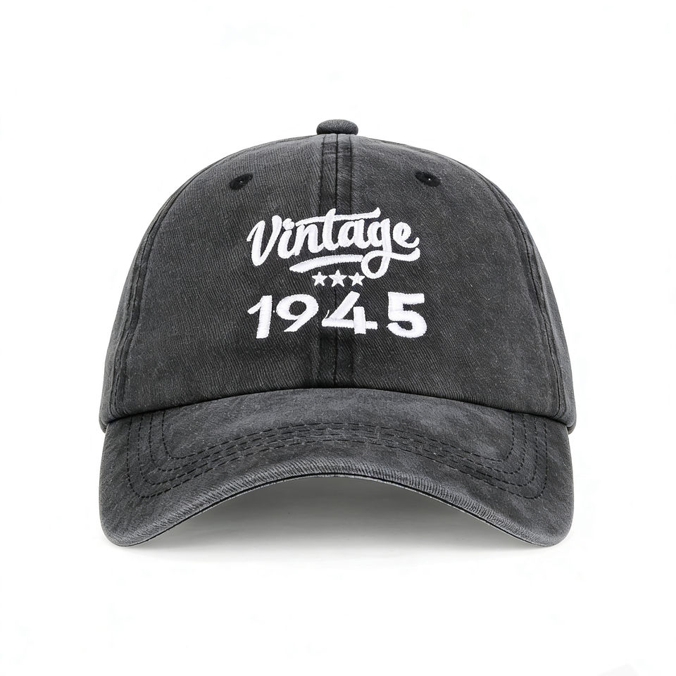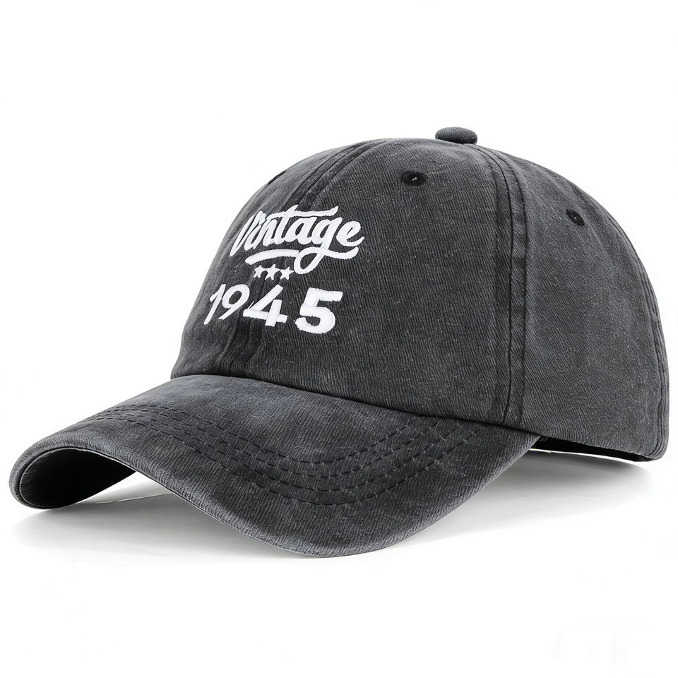 Casquette de camionneur en coton vieilli à 6 panneaux - Broderie vintage « 1945 » respirante, idéale pour les activités de plein air