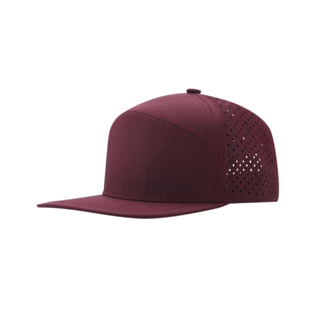 Casquette de sport imperméable structurée à 6 panneaux, à visière plate, découpée au laser, personnalisable, unie, vierge, OEM ODM, perforée, pour le golf, la course à pied