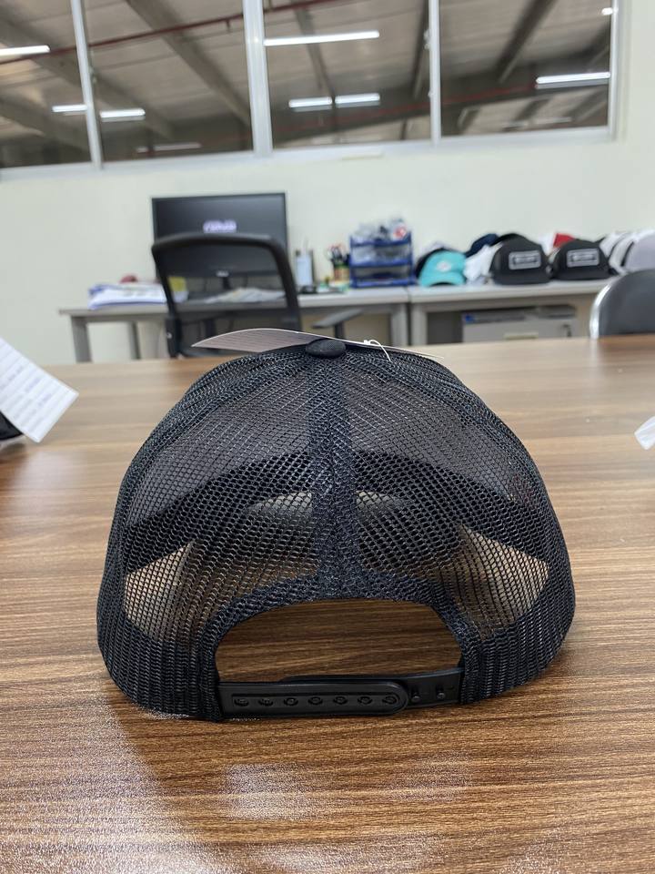 Casquette de camionneur texane noire structurée à 6 panneaux avec logo personnalisé, fabriquée dans l'usine Injae Vina, style quotidien à la mode pour tous