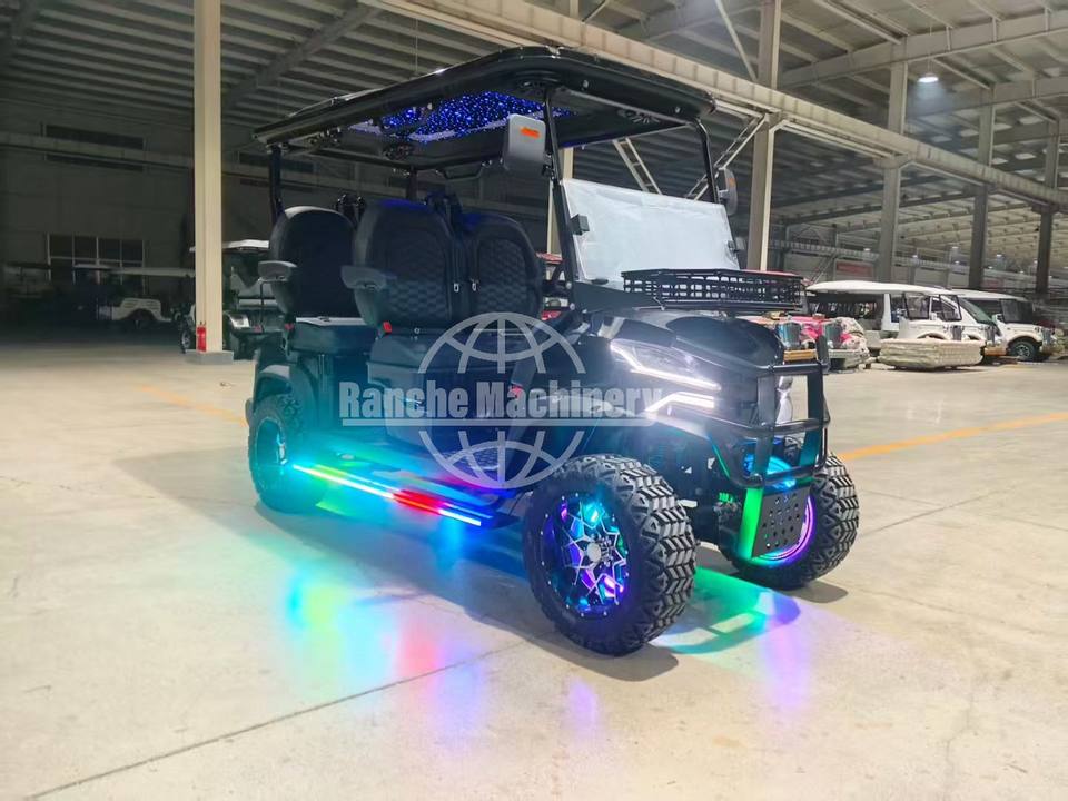 Voiturette de golf électrique personnalisée avec logo couleur, 6 places, climatisation, moteur 5 kW, tout-terrain
