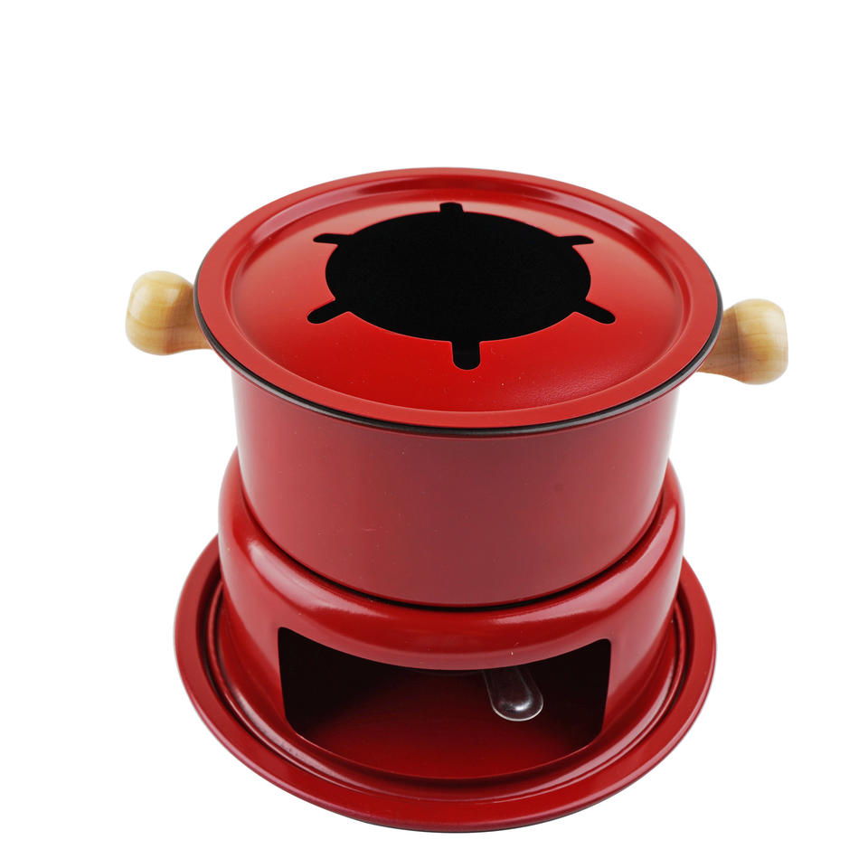 Service à fondue au fromage suisse 6 pièces avec base et plat à alcool pour chocolat, barbecue au fromage en acier au carbone de couleur rouge