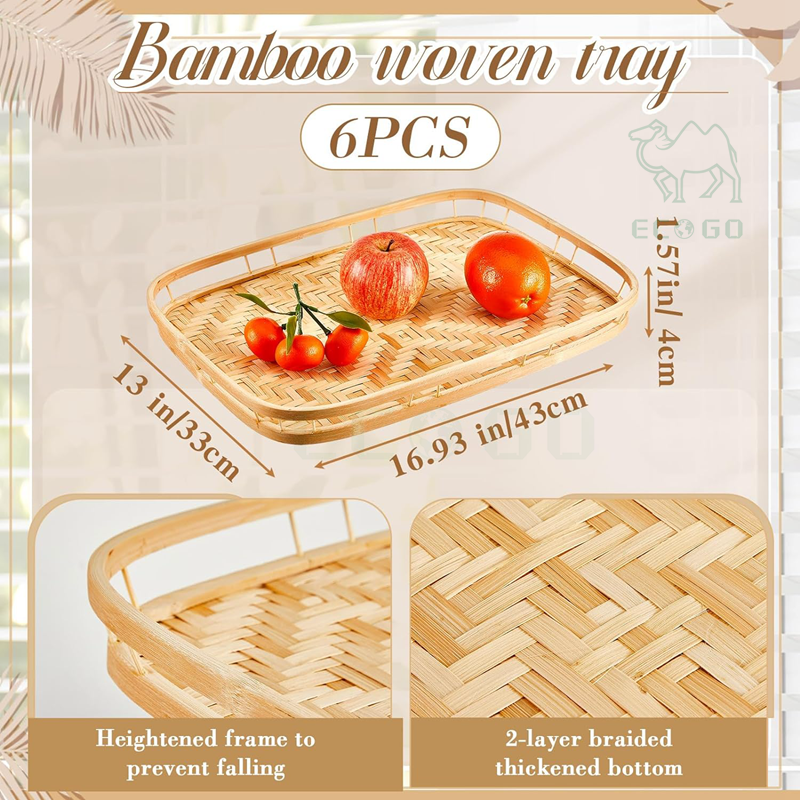 Description:Plateaux de service en osier de bambou 6 pcs Plateaux tissés à la main