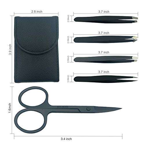 Ensemble de 6 pinces à épiler de précision noires/roses, kit de maquillage pour femmes avec ciseaux courbés