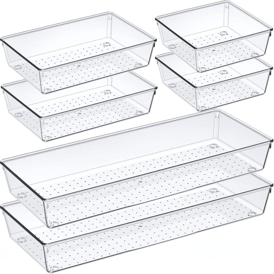 Ensemble de 6 organiseurs de tiroirs en acrylique transparent de grande taille, antidérapants et anti-fissuration, plateau de rangement de cuisine multifonctionnel