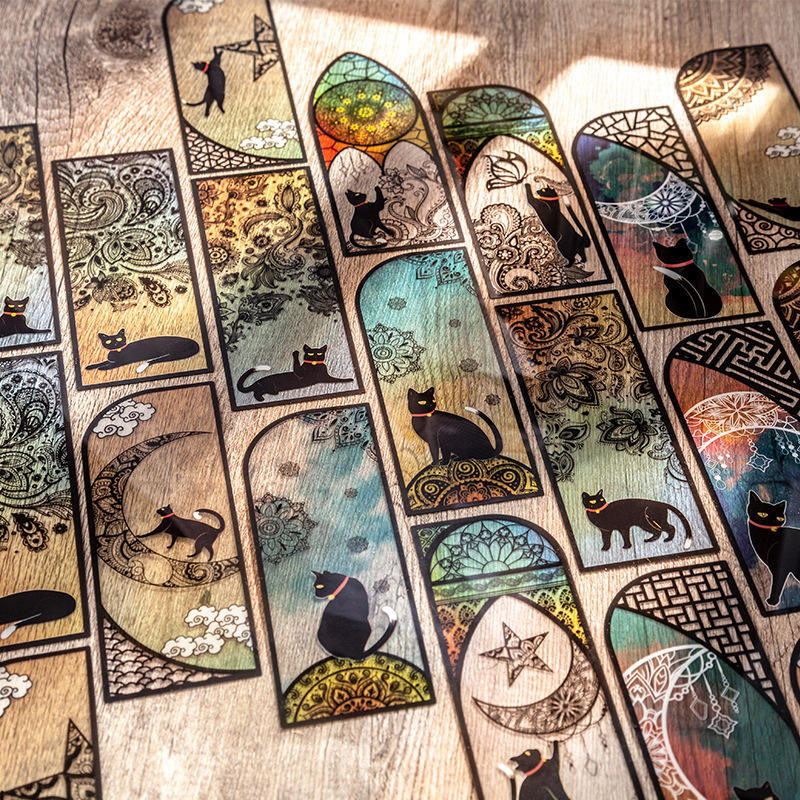 6 pièces/ensemble PVC mat lecture livre marque rétro livre Page marqueur papeterie fournitures mignon chat noir série quotidienne signet
