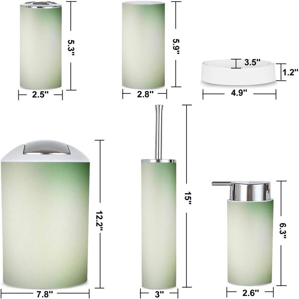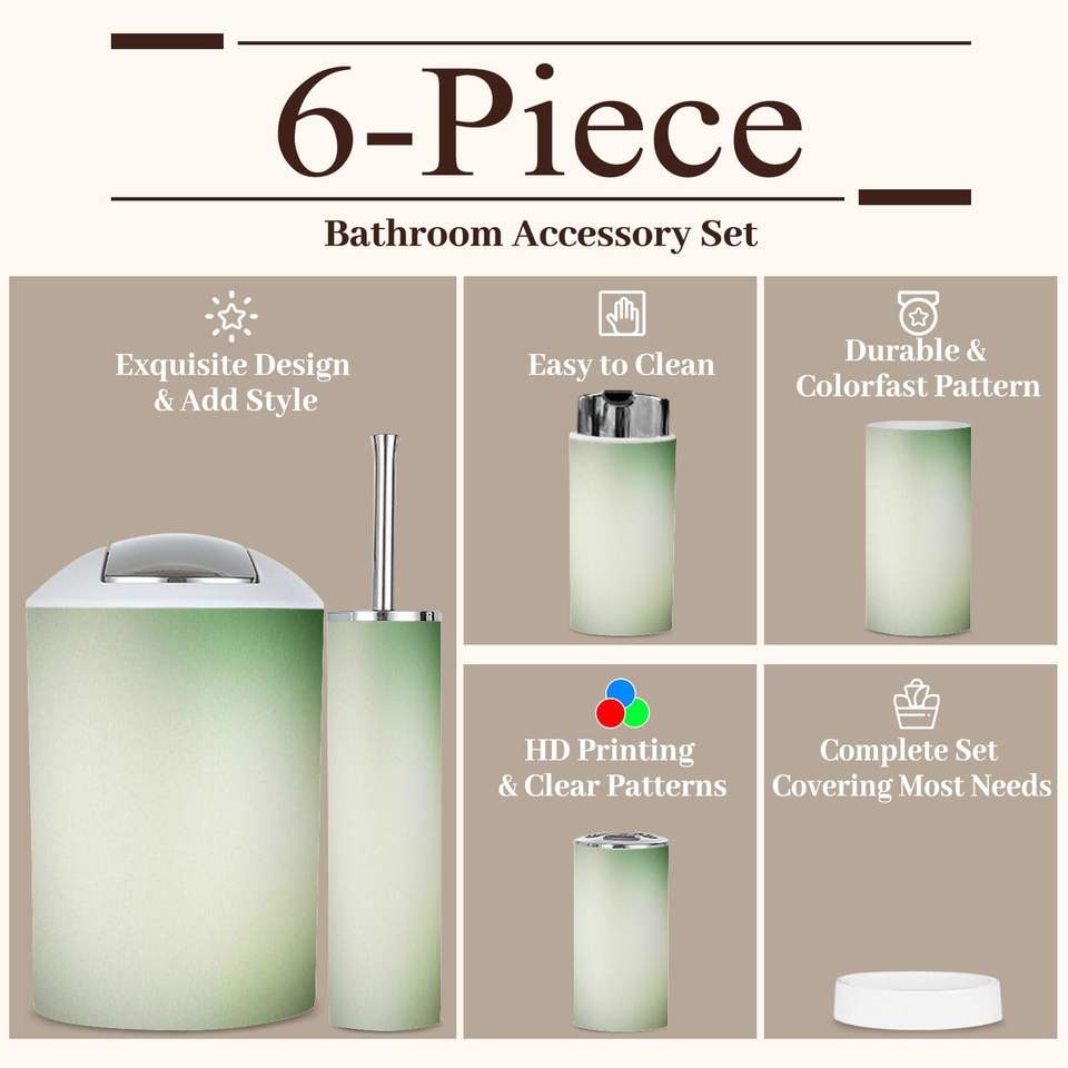 Ensemble de matériel de salle de bain 6 pièces vert sauge avec fleurs et branches motif sans couture finition de surface brossée tout imprimé