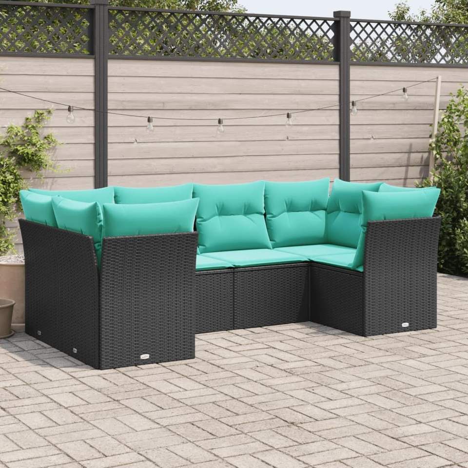 Ensemble de canapés de patio en polyrotin noir moderne avec coussins, mobilier d'extérieur, 6 places, design contemporain