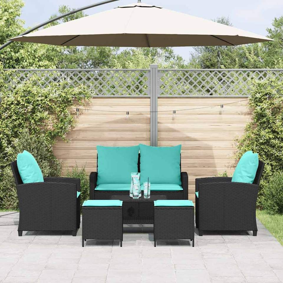 Ensemble de canapés de patio en polyrotin noir, 6 pièces, avec coussins, meubles d'extérieur