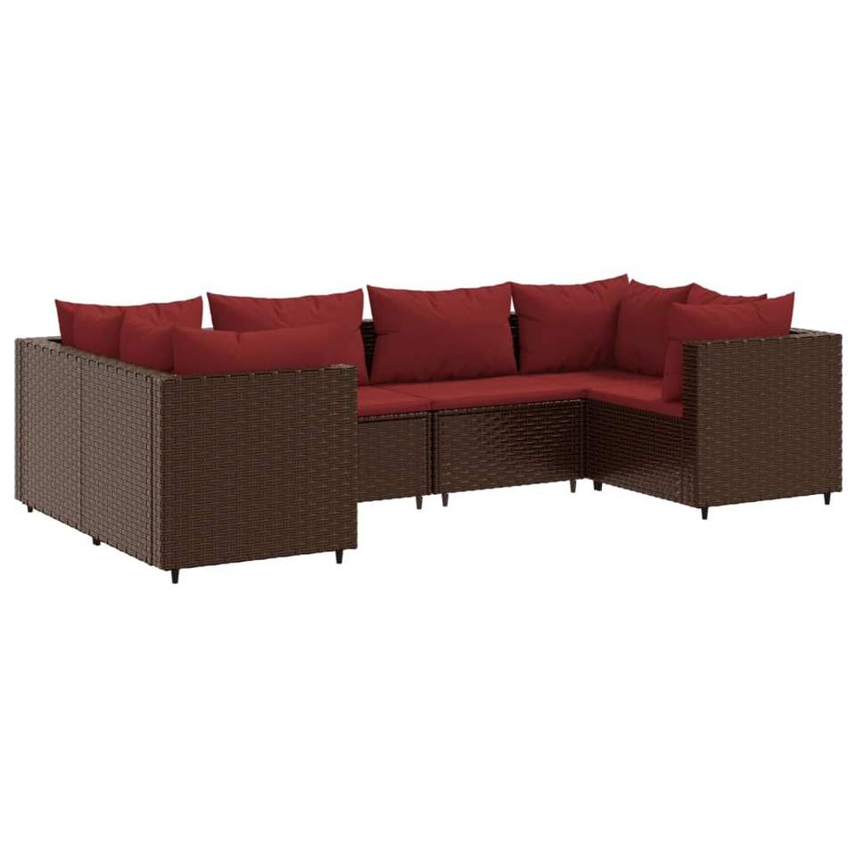 Ensemble de salon de jardin en rotin brun 6 pièces avec pieds réglables, meubles de jardin d'extérieur