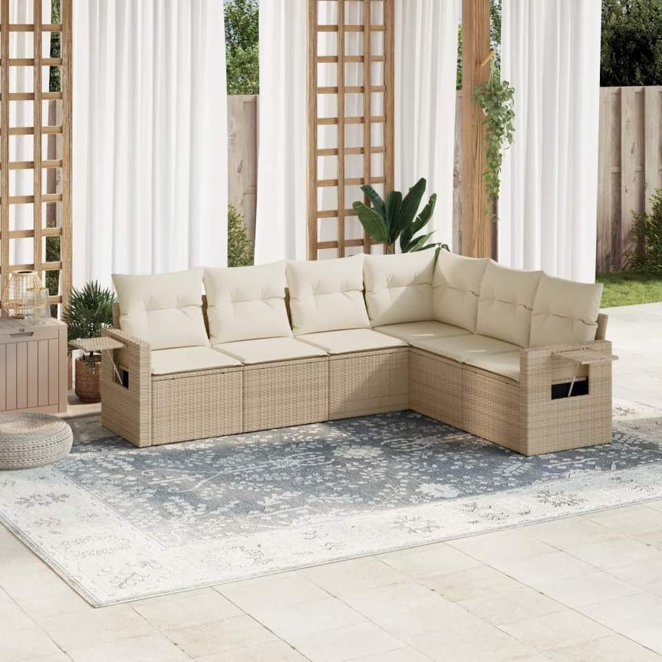 Ensemble de canapé de jardin pliable en rotin PE beige 6 pièces, confortable et pratique, mobilier d'extérieur