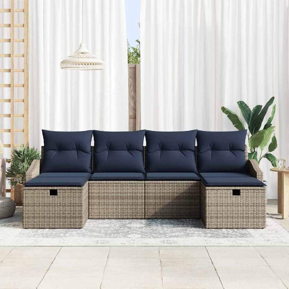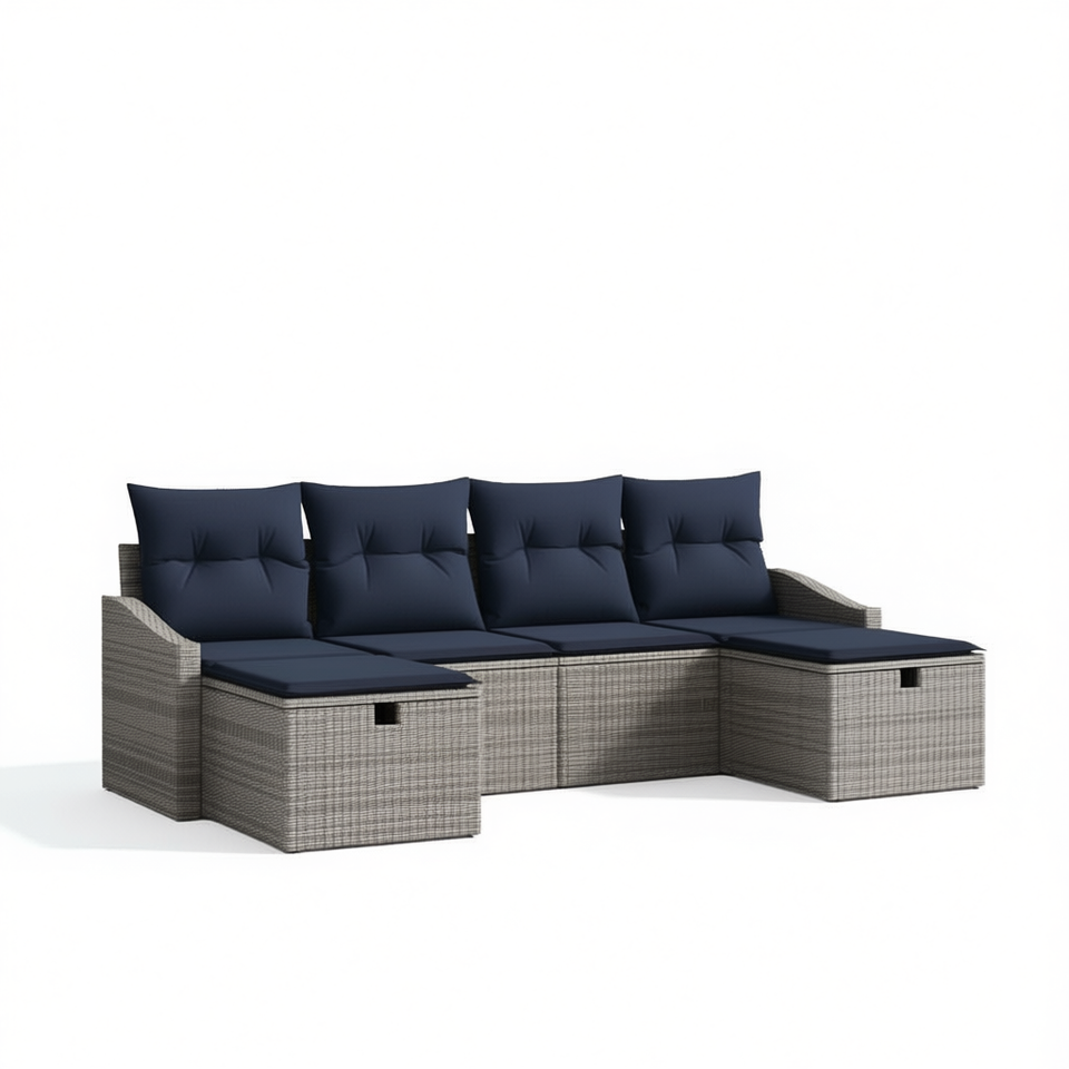 Ensemble de canapés de jardin en polyrotin gris avec coussins, mobilier d'extérieur pour 6 personnes, design contemporain