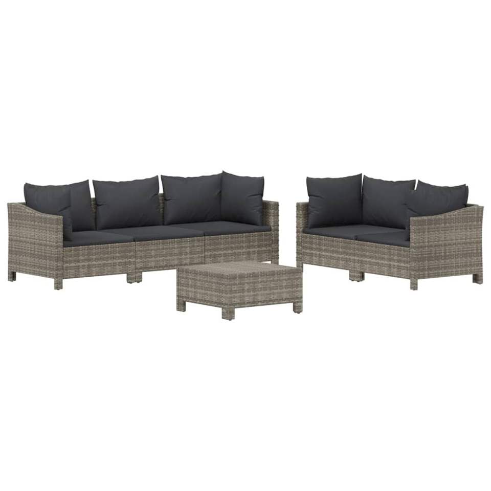 Ensemble de salon de patio 6 pièces en poly rotin gris avec coussins ensembles de jardin