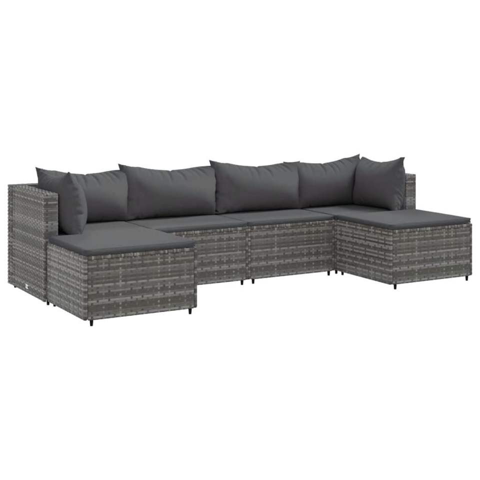 Ensemble de salon de patio 6 pièces en poly rotin gris avec coussins Mobilier d'extérieur durable