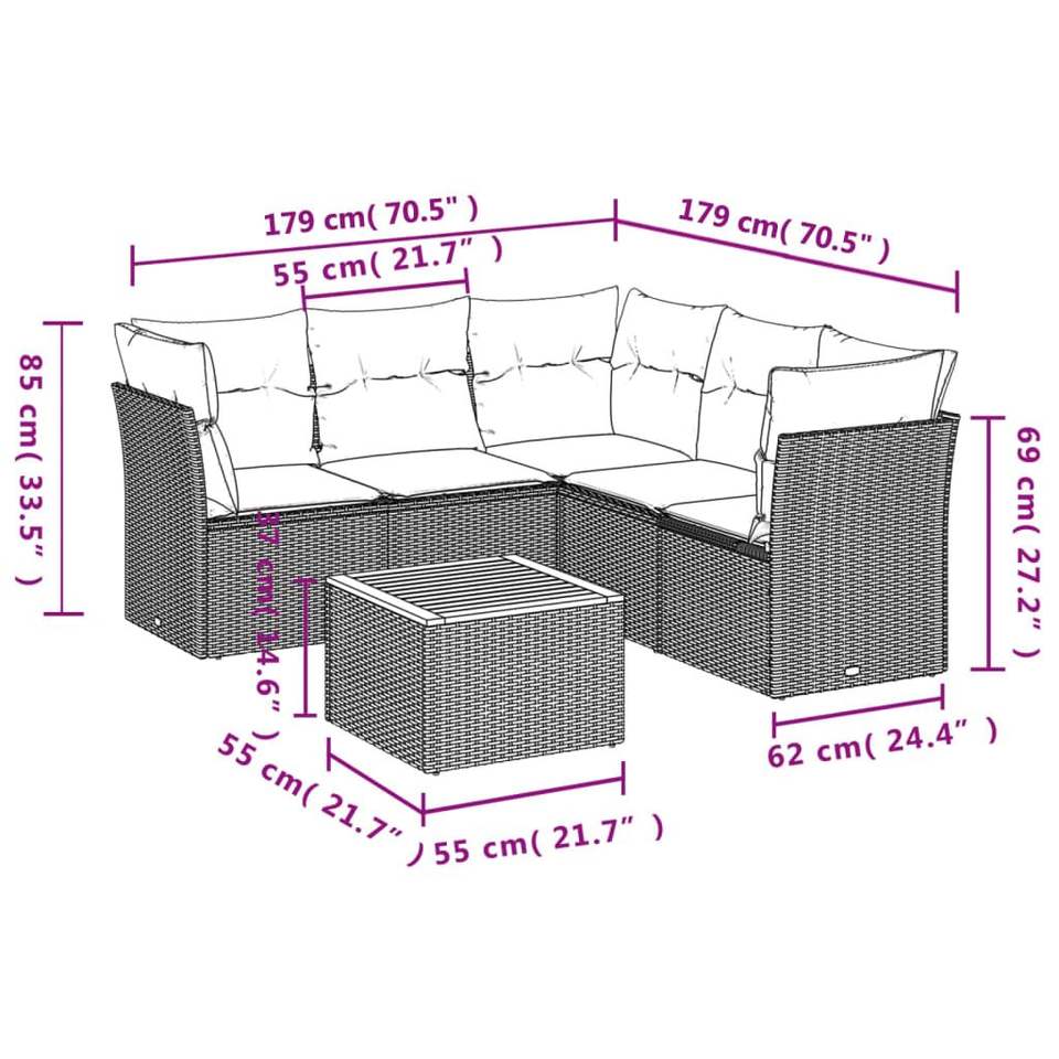 Ensemble de canapé de patio 6 pièces en poly rotin gris avec coussins Mobilier d'extérieur durable