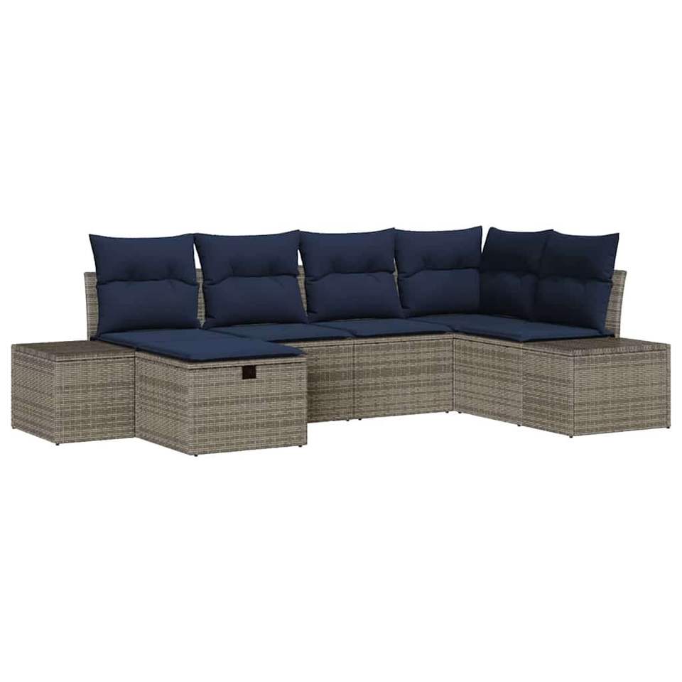Ensemble de canapés de jardin en polyrotin gris, 6 pièces, avec coussins, meubles d'extérieur, ensembles de jardin