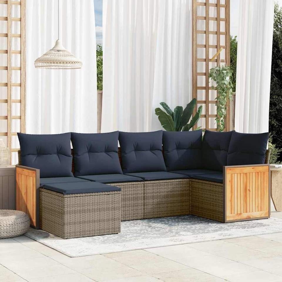 Ensemble de canapés de jardin en polyrotin gris 6 pièces avec coussins