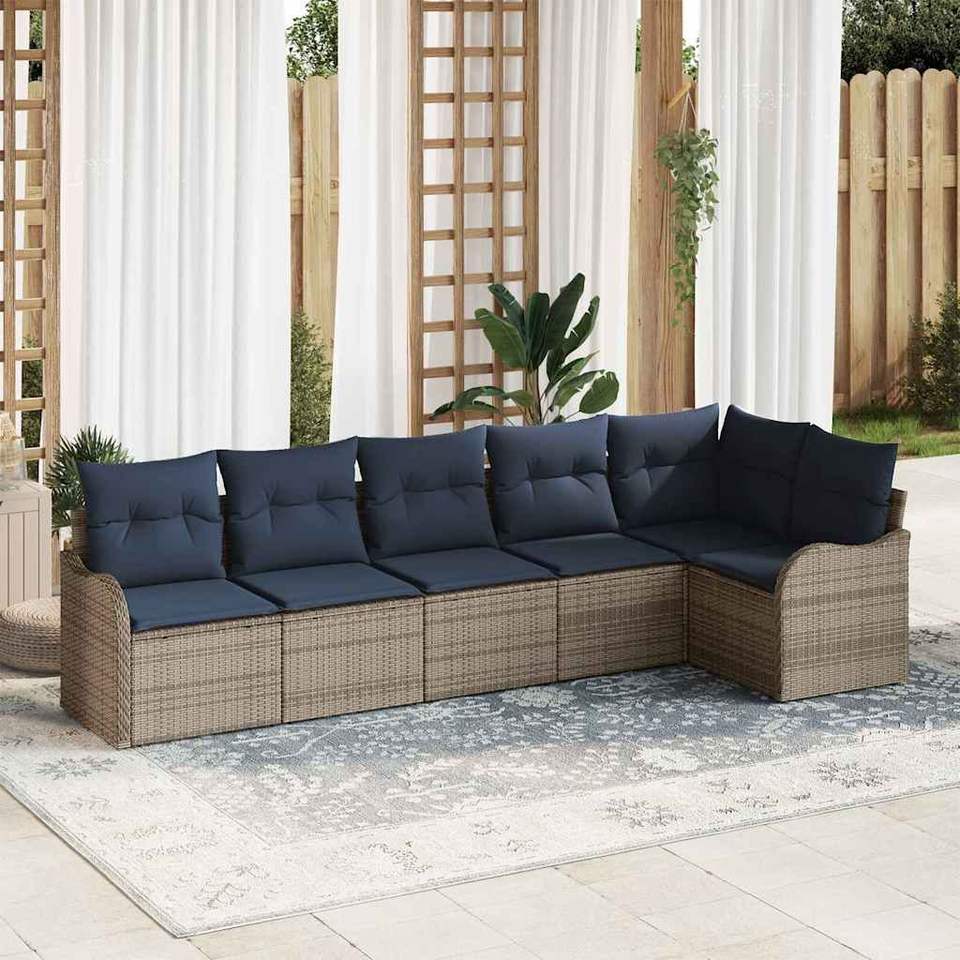 Ensemble de canapé de jardin en polyrotin gris 6 pièces, meubles d'extérieur, coussins imperméables, design contemporain