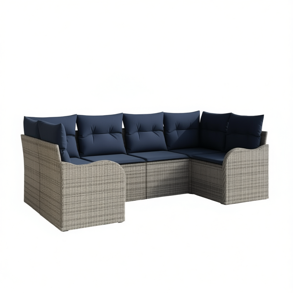 Ensemble de canapés de jardin en polyrotin synthétique gris, 6 pièces, avec coussins, meubles d'extérieur, design contemporain