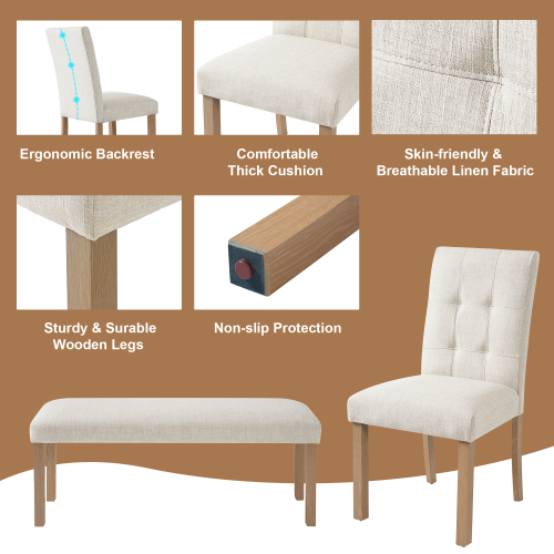 Ensemble de salle à manger moderne 6 pièces, table de cuisine rectangulaire avec 4 chaises rembourrées et un banc, idéal pour la salle à manger et le salon